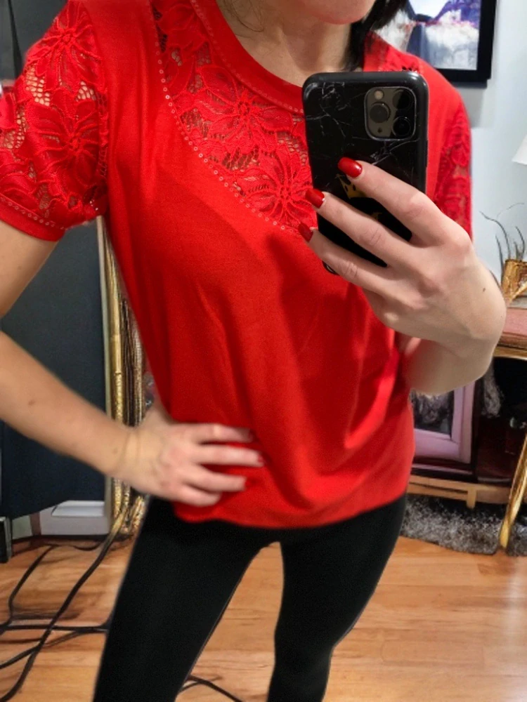 Červené tričko s krajkouna sklade14,27 EUR/ ks11,60 EUR bez DPH