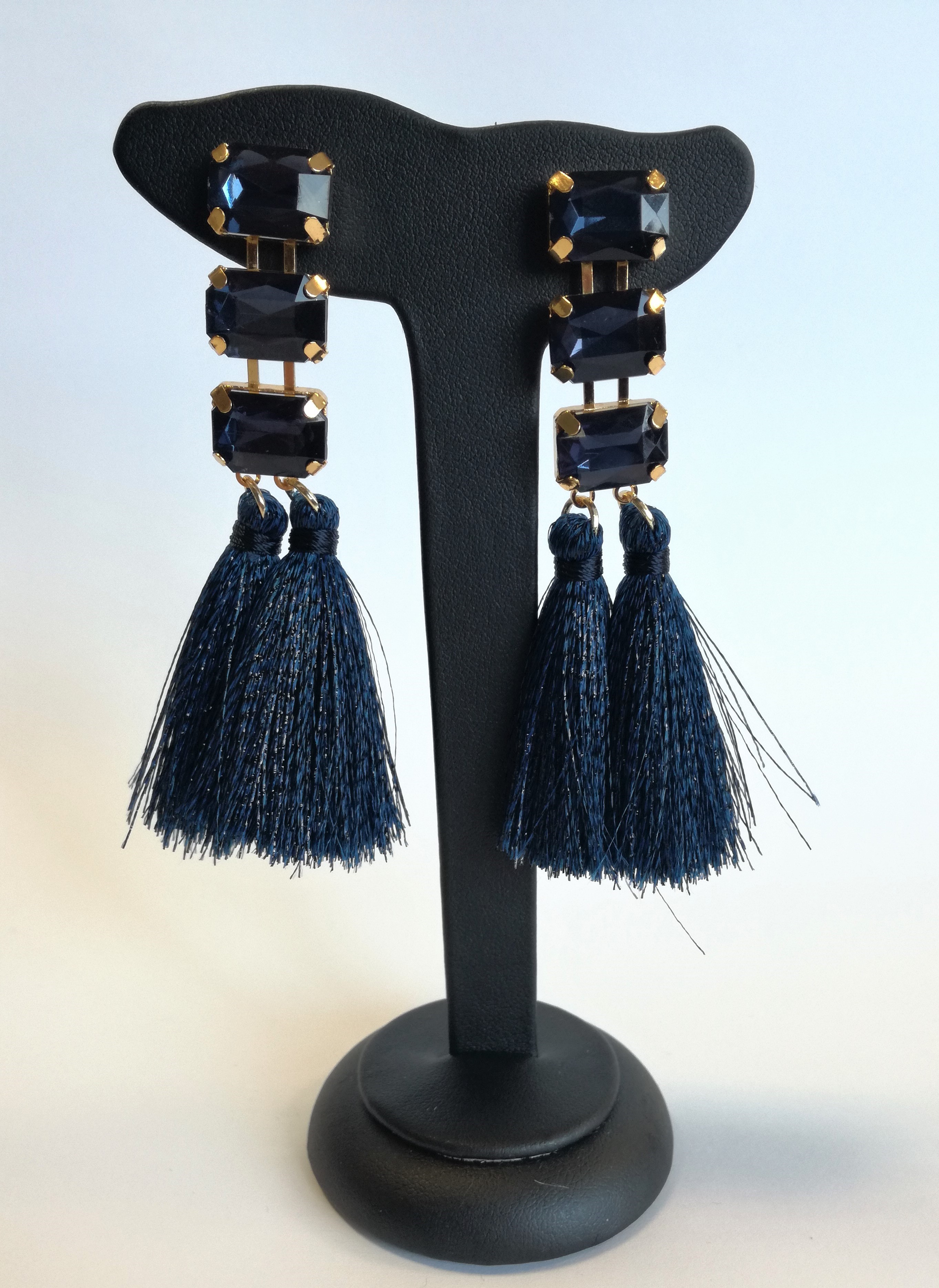 Tmavomodré strapcové náušnice s kamienkami