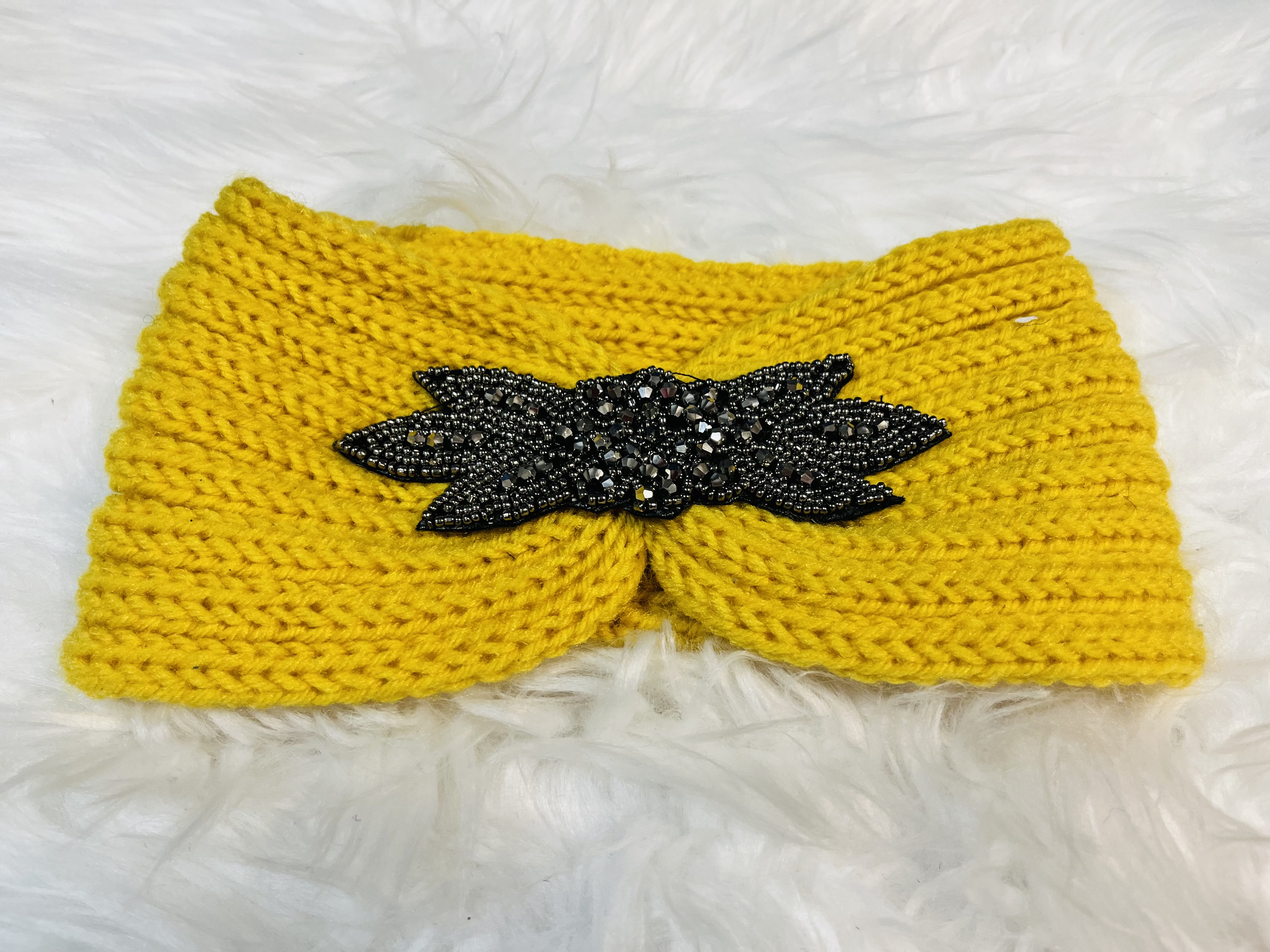 Horčicová pletená čelenka s aplikáciouna sklade8,00 EUR/ ks6,50 EUR bez DPH